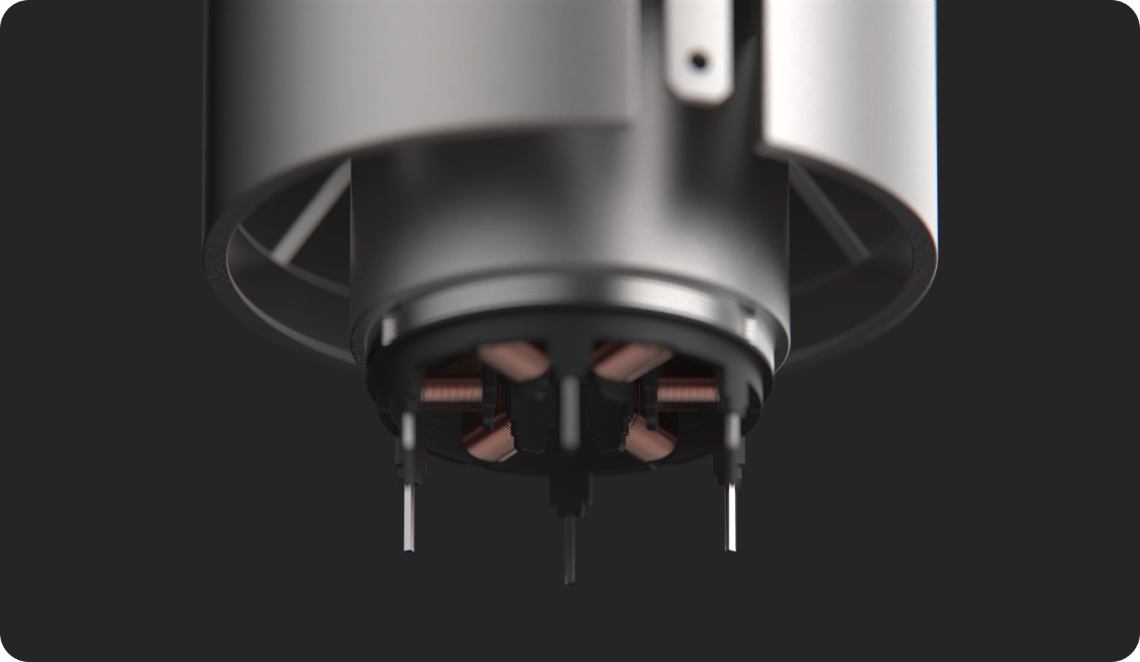 妙界自研自产高速无刷电机经过了700多天研发。从细节工艺做起,以自主设计为核心,连续攻破了结构设计、线圈设计、精雕叶片工艺、转数、动平衡、电磁噪音、稳定性、寿命等二十多项严格测试,最终完成设计和量产。